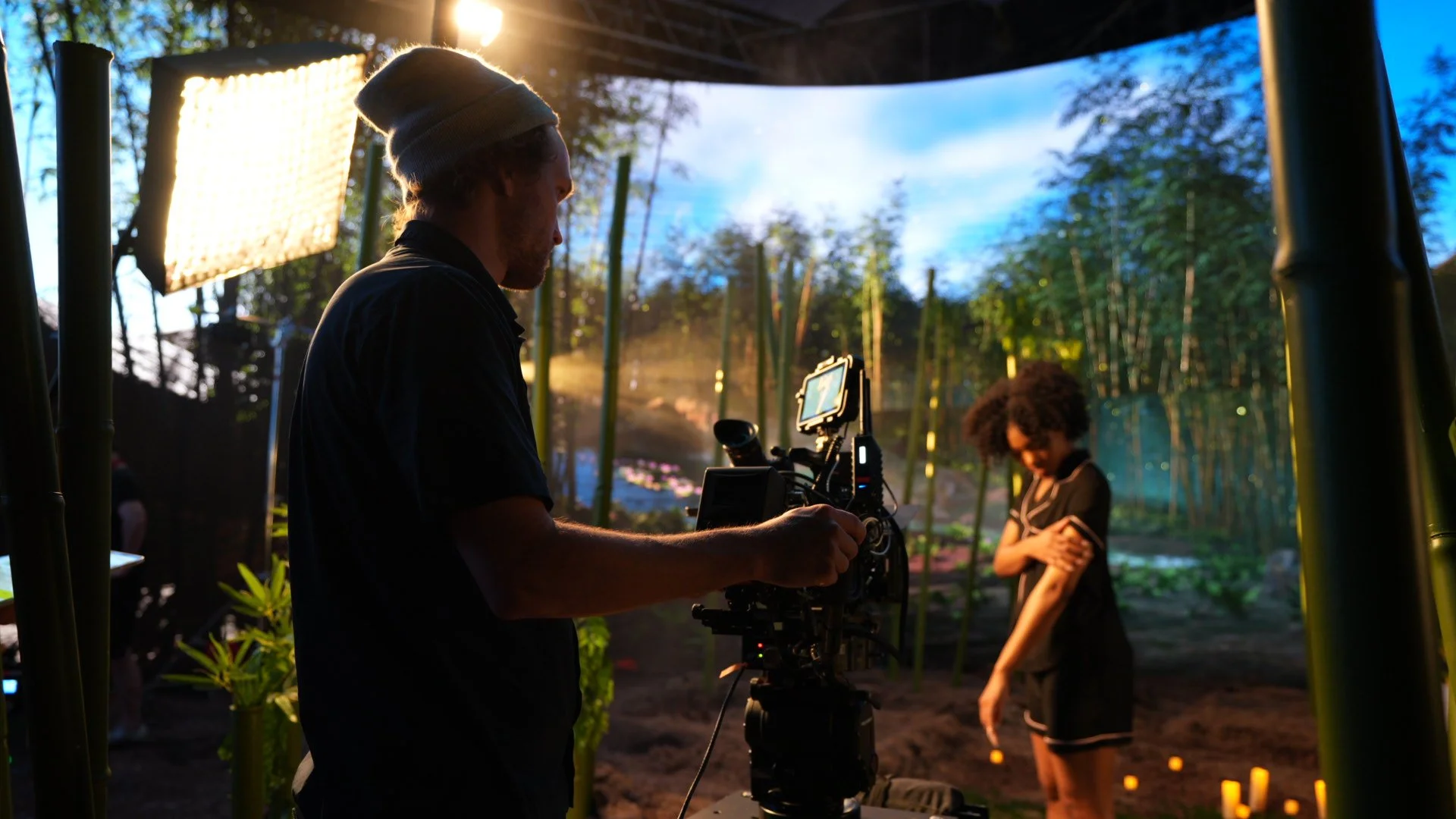 The magic of virtual production allowed us to bring a rainy bamboo forest to life right here in Austin Texas.